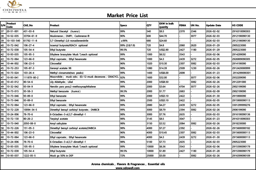 Beta Ionone - ODOWELL-en Violet-Woody Ketone Klasikoa Usain Finaren Sakontasunerako